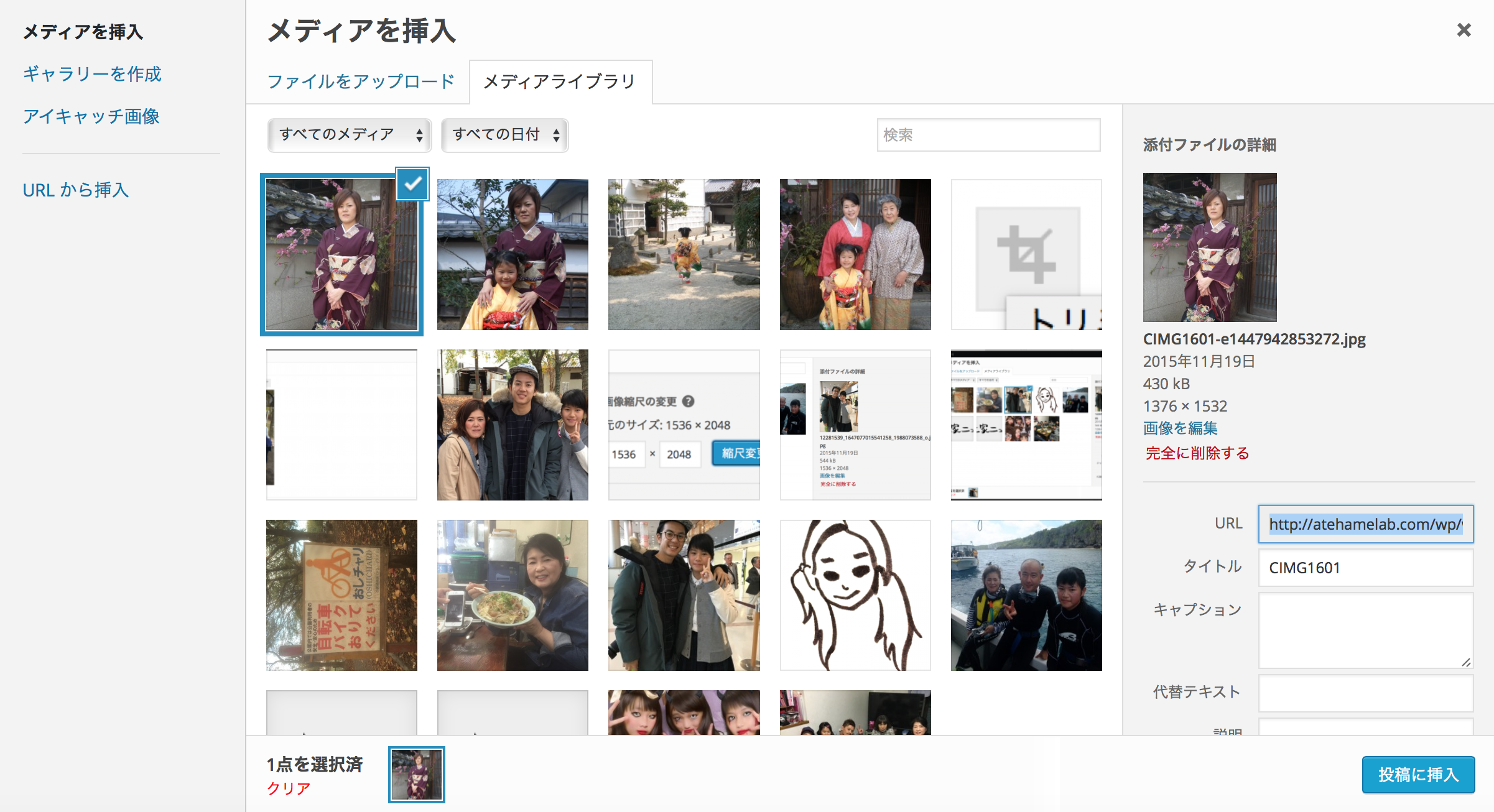 青色でチェックが表示されたら、右下の「投稿に挿入」をクリック!CIMG1601